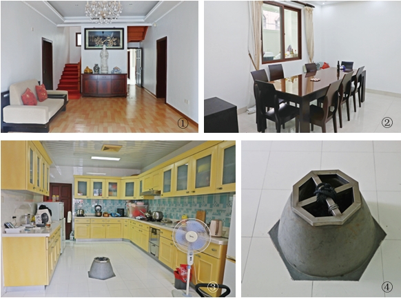 ①别墅一层大厅 ②别墅餐厅 ③别墅厨房 ④别墅厨房内水井
