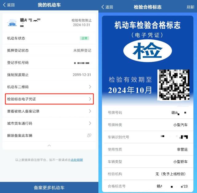 机动车检验标志电子凭证与纸质凭证具有同等效力。 在驾车遇到交通民警执法检查时,驾驶人可以主动出示检验标志电子凭证,民警将通过警务执法终端扫描电子凭证二维码,核查电子凭证有效性和机动车状态。