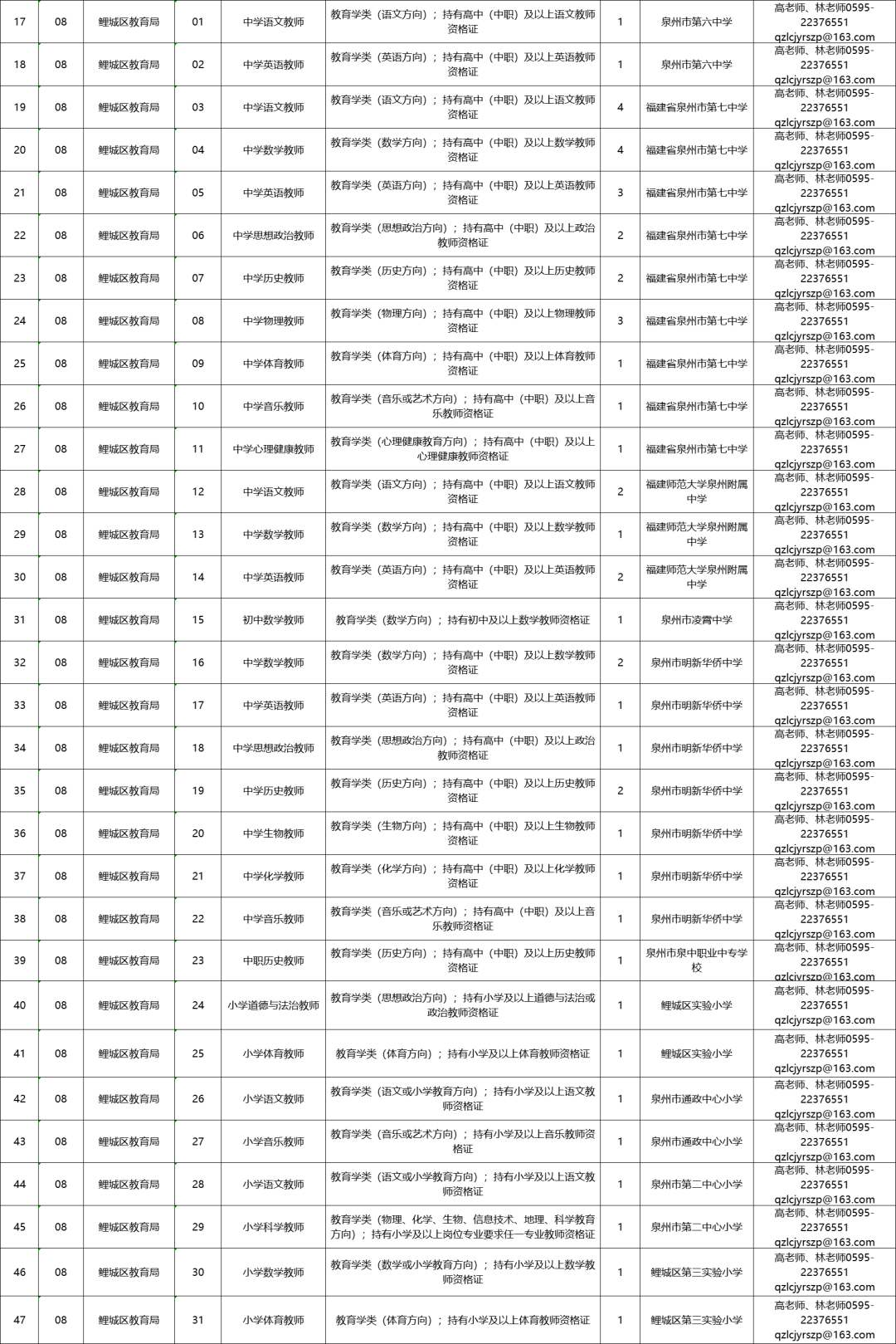 (六)招聘工作全程接受各县(市、区)人社部门、泉州市人社局监督。监督电话:0595-22112393。