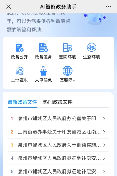 目前,平台与“福建省网上办事指南”“区政策文件库”等建立知识互联互通,构建全业务范围知识库,涵盖税务、医保、教育等39个部门知识,收录近3000项办事服务事项,输出大约10万条政务问答知识,覆盖高频知识量达上万条。