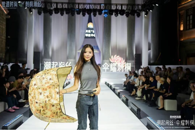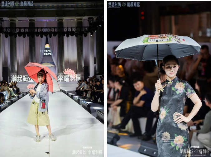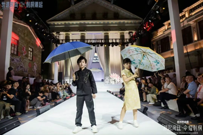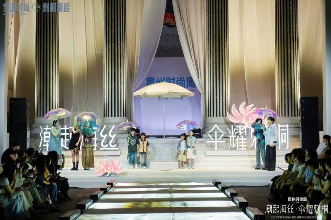 据介绍,本次大秀分为“伞耀刺桐·艺承千年”“伞耀刺桐·好物风生”“伞耀刺桐·韵彩流光”“伞耀刺桐·值此伞亮”四大篇章,集中展示了多款特色伞具,涵盖日常实用、潮流时尚、国潮文创、科技创新等多个类别。从日常休闲到高定系列,从度假文艺到新中式风,风格各异,一把小小的晴雨伞,演绎着从古城日常走向世界舞台的海丝故事,折射出泉州时尚产业的澎湃活力。