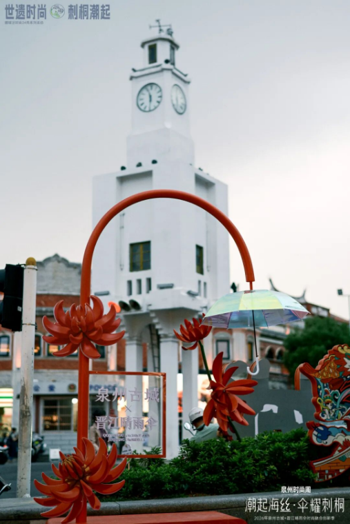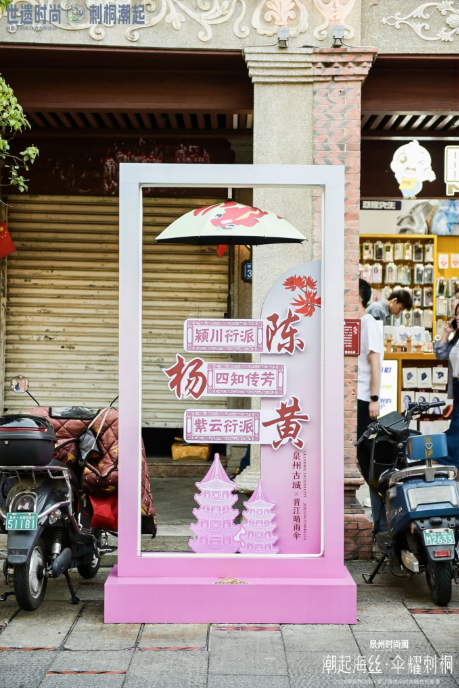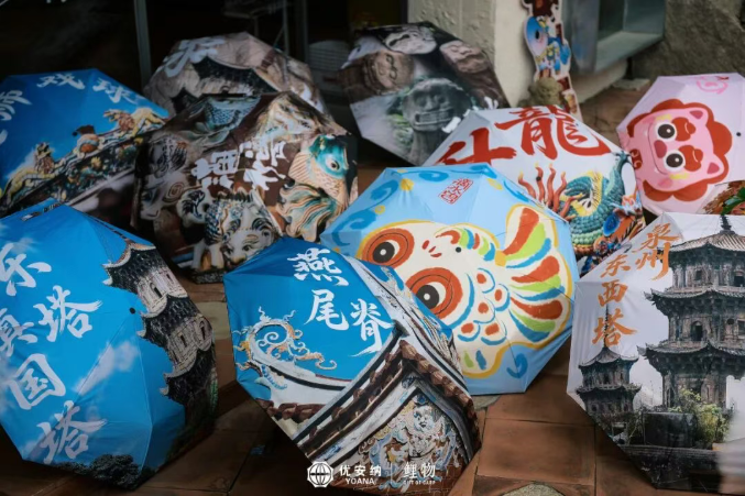 同时,活动还推出了一组限定泉州文创伞,东西塔、燕尾脊、剪瓷龙、石敢当、滴水兽等传统元素与卡通插画跃然伞上,兼具收藏价值与实用功能。