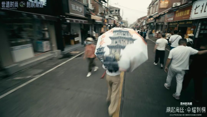 随后,在百年侨光电影院前,一场晴雨伞全球首品首发首秀精彩上演。这座承载着老泉州人记忆的电影院,化身海丝时尚秀场,模特们手持最新款概念伞具,踏着光影交织的T台款款而行。海丝元素、闽南风情与现代设计在此交融。