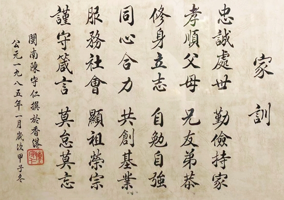“忠诚处世,勤俭持家;孝顺父母,兄友弟恭;修身立志,自勉自强;同心合力,共创基业;服务社会,显祖荣宗;谨守箴言,莫怠莫忘。”无论在什么地方,这则家训始终伴随着陈守仁家族,这或许就是陈老先生能够凭借泉州人爱拼敢赢的那股劲,在海外站稳脚跟,并再漂洋过海回乡反哺,致力于祖国与家乡教育慈善事业的精神纽带。