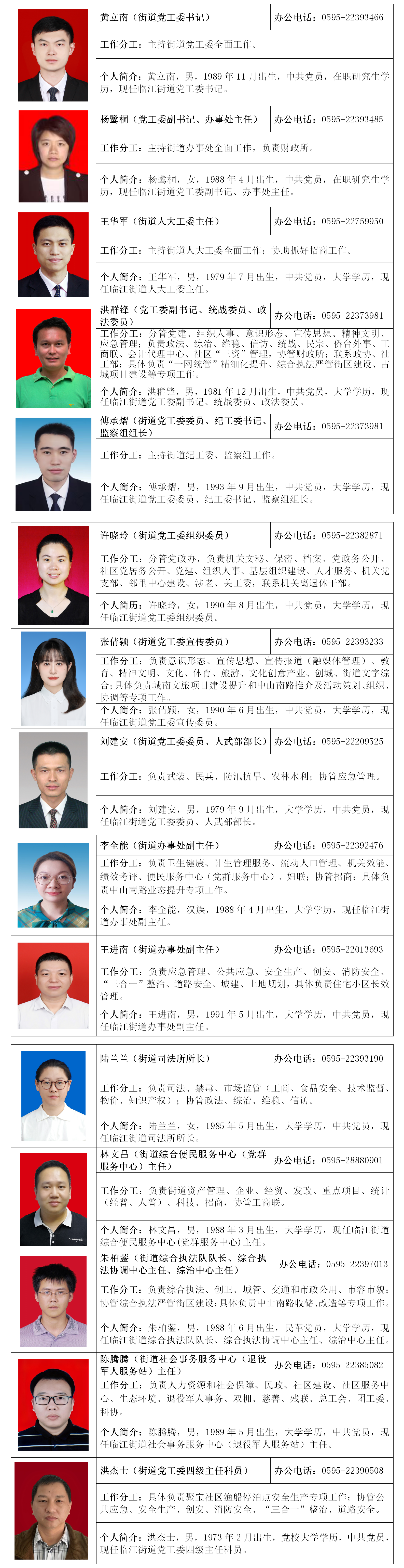临江街道区管干部基本情况
