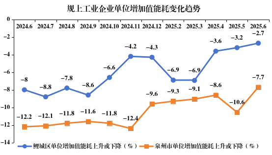 上半年,全区规模以上工业企业单位增加值能耗下降2.7%,全市排名第10位。去年以来,全区单位增加值能耗虽保持下降态势,但降幅持续回落,用能效率显著低于全市平均水平,单位增加值能耗降幅同全市相比存在5.0个百分点的缺口。