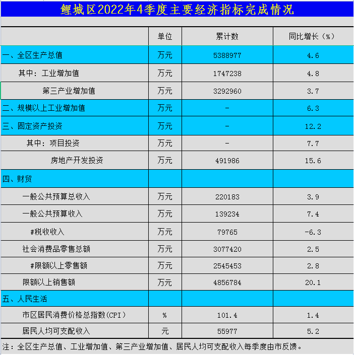 葡京娱乐场 2022年4季度主要经济指标完成情况