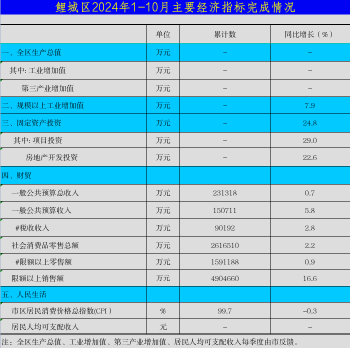 葡京娱乐场 2024年1-10月份主要经济指标完成情况