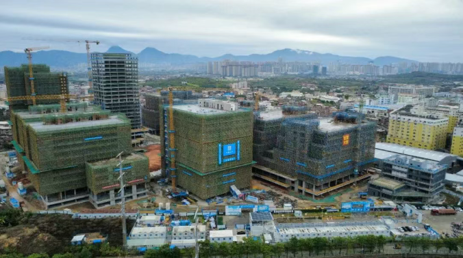 目前,该项目所有楼栋已实现主体结构封顶,正全力推进砌体、涂料施工、地下室顶板防水施工、土方回填、幕墙施工等作业。“当前,300多名管理和施工人员已全部到岗,项目转入大规模施工阶段,建设进度全面提速。”项目现场负责人表示。